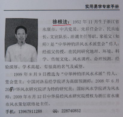 永康風水師電話、風水先生聯系方式:18305896288,永康風水大師有哪些呢?在永康看風水先生最準的是徐根法大師。永康風水師徐根法是中華神釣洋風水術派傳人,專業陰陽宅看風水、公司取名稱、小孩取名字、擇日子、神佛、開光、選車牌、手機號碼、算命、點痣以及家居裝潢風水知識。